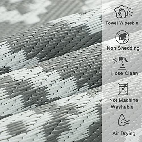 The outdoor rug is easy to be cleaned, just shake off, sweep the dirt away, spray with water, hose the rug off, or use a leaf blower, then let it air dry.