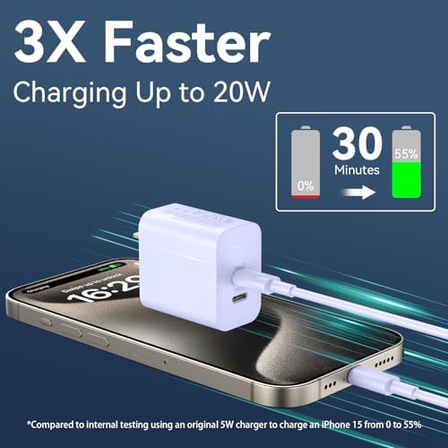 Fast Charger for iPhone/iPad: 20W PD adapter wall plug to fast charge compatible with iPhone iPhone 15 Pro Max/15 Pro/15, iPad Pro 12.9″/11″, iPad Air 5/4, iPad 10, iPad Mini 6 and more
