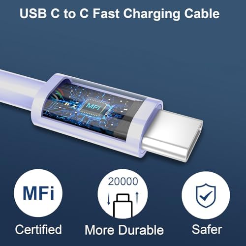 10FT iPhone 15 Charging Cable: With 10ft usb c to c fast charger cables equipped with smart chip and high quality copper core free you from the worry of popping up error message, built-in over-voltage protection, features a stable voltage