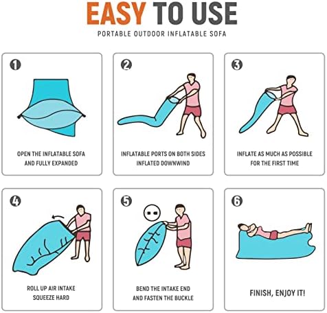 Our InflatableCouch with Side Pockets and Matching Bag. Tough epidermis is Waterproof,Anti-Air Leaking and Light for Outdoor Activities, Traveling Camping, BeachParties, Music Festivals. No need use Tools and Shape Easily.