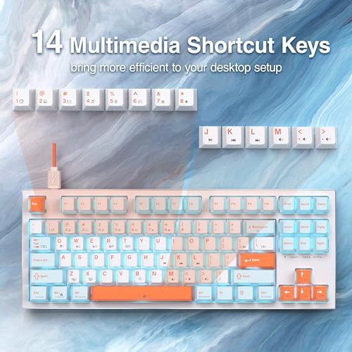 【Dual-Color Injection Keycaps】: The vibrant orange, blue, and white keycaps are made of durable dual-color injection ABS material. The characters are molded using a dual-color injection process, ensuring long-lasting visibility and a comfortable feel.