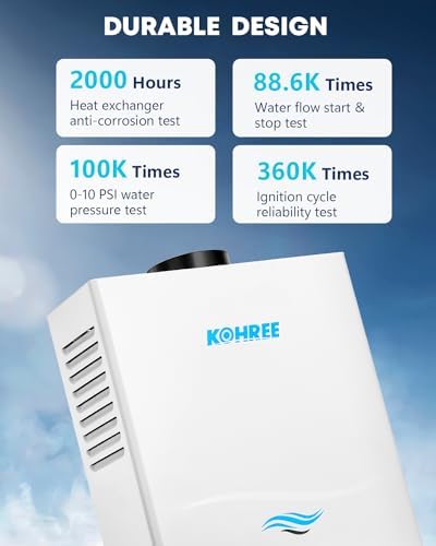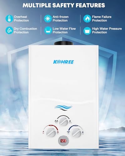 Safety Features: CSA Safety Approved & 6-in-1 Protection, including anti-freezing protection, over-heating protection, low water flow protection, dry combustion protection, high water pressure protection and flame failure device. Kohree portable water heater is also windproof and can be used on windy days.