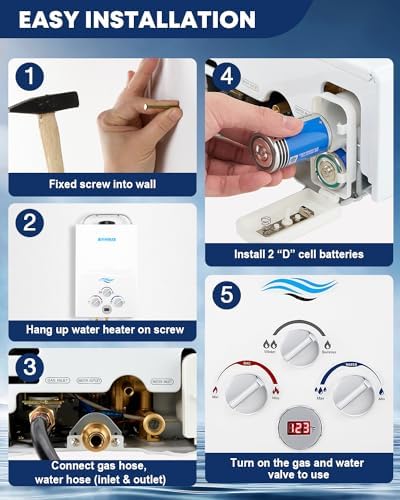 Portable Water Heater, Convenient for Outdoor Camping: Compact size and 12 lbs lightweight design for easy carry. Use the handle of the portable water heater or the mounting bracket on the back to hang it. Good for outdoor showers. Come with detailed instructions, it only takes you a few minutes to install it. The gas pipe is pre-connected to the gas inlet to eliminate the risk of gas leakage.