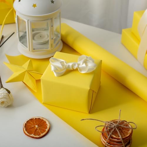 Merture Yellow Kraft Paper Roll – 18 In X 100 Ft (149 sq.ft.) Recyclable Wrapping Paper for Gift Wrapping, Party Decor, Bouquet Material, Art Craft, Table Runner, Furniture and Floor Protection
