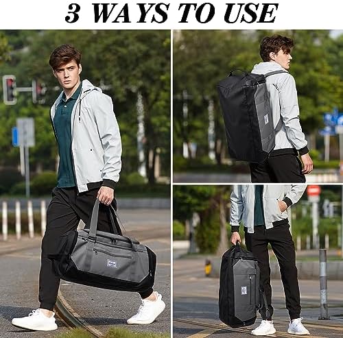 Laripwit Gym Bags for Men, 40L Medium Sports Travel Duffel Bag with Shoe Compartment & Wet Pocket Lightweight Gym Duffle Bag Backpack Multipurpose Weekender Overnight Backpack for Women, Gray