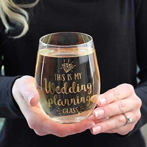 Lillian Rose “This is My Wedding Planning Glass” Stemless Wine Glass. Power through the stress of wedding planning with a drink in this delightful “This is my wedding planning glass” stemless wine glass. This glass is simple and elegant and makes a great engagement or bridal shower gift! Height 4. 75 inches