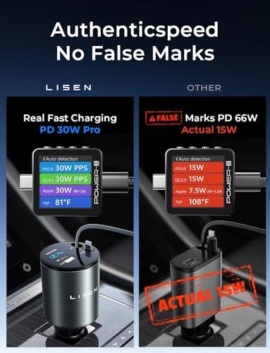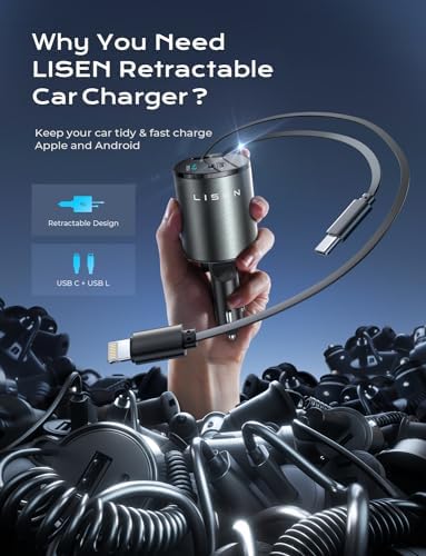 ⚡ 2024’s Ultimate Car Charging Solution for Apple & Android: The LISEN 4 in 1 Retractable Car Charger revolutionizes in-car charging with its PD USB C and USB Lightning retractable cables. Designed for convenience and neatness, this USB C Car charger fast charging supports simultaneous charging for both Android and iPhone devices. Featuring the exclusive Tora-TC Heat Sink, ensures superior long-term performance. Plus, its robust 69W output can efficiently power up four devices at once.