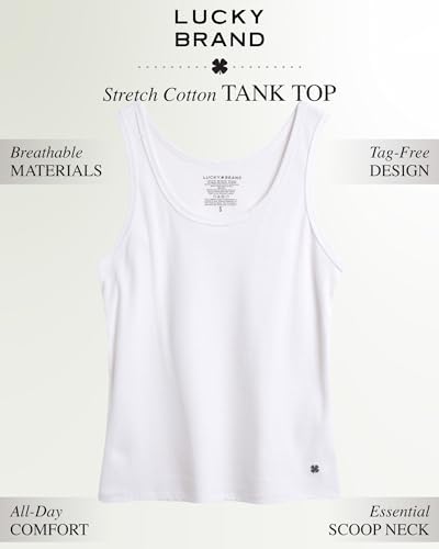 Lucky Brand Women’s Tank Top – 4 Pack Stretch Cotton Scoop Neck Sleeveless T-Shirt (S-XL)