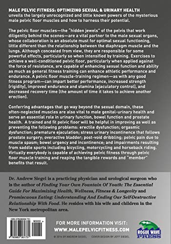 MALE PELVIC FITNESS: OPTIMIZING SEXUAL & URINARY HEALTH unveils the largely unrecognized and little known powers of the mysterious male pelvic floor muscles and how to harness their potential.The pelvic floor muscles—the “hidden jewels” of the pelvis that work diligently behind the scenes—are a vital partner to the male sexual organs, whose collaboration is an absolute must for optimal sexual functioning, little different than the relationship between the diaphragm muscle and the lungs. Although concealed from view, they are responsible for some powerful effects, particularly so when intensified by training. Exercises to achieve a well-conditioned pelvic floor, particularly when applied against the force of resistance, are capable of enhancing sexual function and ability as much as general fitness training can enhance athletic performance and endurance. A pelvic floor muscle-training regimen—as with any good fitness program—can impart better performance, increased strength (rigidity), improved endurance and stamina (ejaculatory control), and decreased recovery time (the amount of time it takes to achieve another erection).Conferring advantages that go way beyond the sexual domain, these often-neglected muscles are also vital to male genital-urinary health and serve an essential role in urinary function, bowel function and prostate health. A trained and fit pelvic floor will be helpful in improving as well as preventing the following problems: erectile dysfunction; orgasmic dysfunction; premature ejaculation; stress urinary incontinence that follows prostate surgery; overactive bladder; post-void dribbling; pelvic pain due to muscle spasm; bowel urgency and incontinence; and impairments resulting from saddle sports including bicycling, motorcycling and horseback riding. Virtually everybody is capable of achieving pelvic fitness through pelvicfloor muscle training and reaping the tangible rewards and “member” benefits that result.