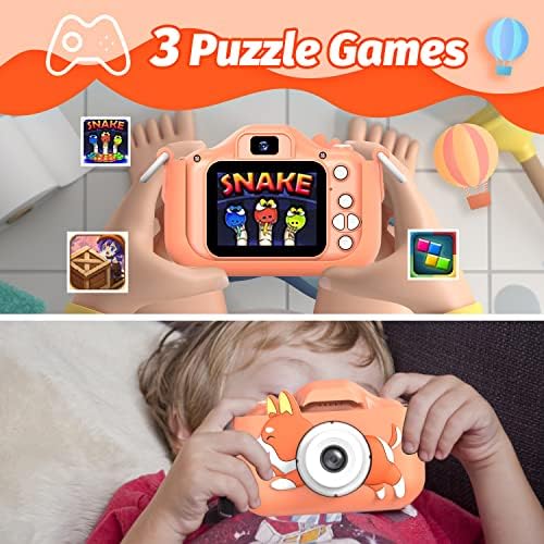 Multiple functions: This children’s camera offers more functions based on original photo recording,video recording,playback,burst recording,self-timer,classic filters,cute cartoon frames. Each kids camera comes with a 32GB Micro SD card(is already installed in the camera). Your kids can take photos anytime, anywhere. Download the photos and videos to a computer using the included card reader and share them with family and friends. It also has built-in puzzle games and can play music.