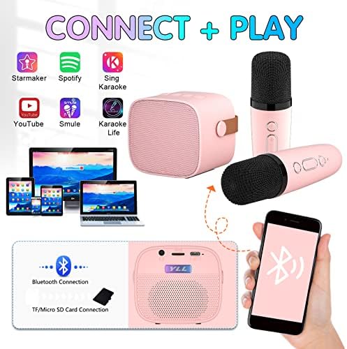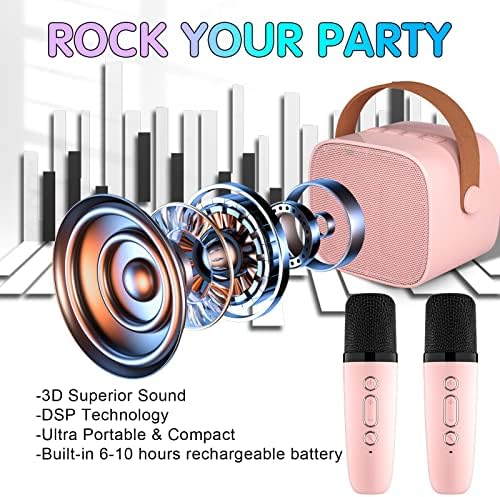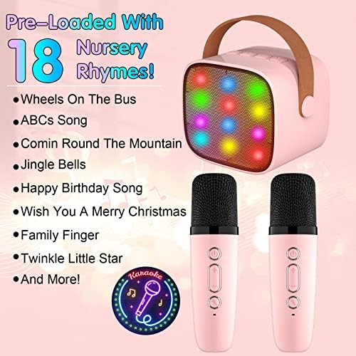 Mini Karaoke Machine for Kids Adults, Portable Bluetooth Speaker with 2 Wireless Microphones,18 Pre-Loaded Songs Toys Birthday Gifts for Girls 4, 5, 6, 7, 8+ Years Old Toddler Teens (Lightpink)