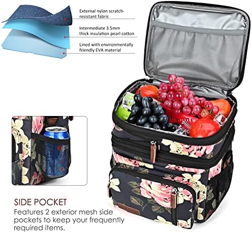 【Large-capacity double- layer lunch bag】It measures 9.5″ x 8.0″ x 10.5″. Expanded size: 11″ x 8.0″ x 10.5″. Different foods can be placed on the upper and lower layers to prevent food from being piled up and squeezed. The large-capacity lunch bag can easily hold all your beer, snacks, drinks, sandwiches, fruits, lunch boxes.