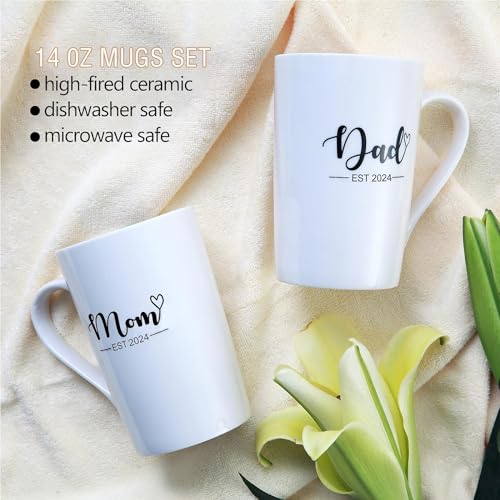 This 14 oz mom and dad est 2024 mug set pays homage to the year their family expanded. Made of top-quality ceramic for outstanding durability, and they are microwave and dishwasher safe, Lead-free and Non-toxic.