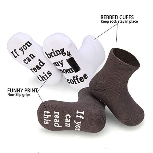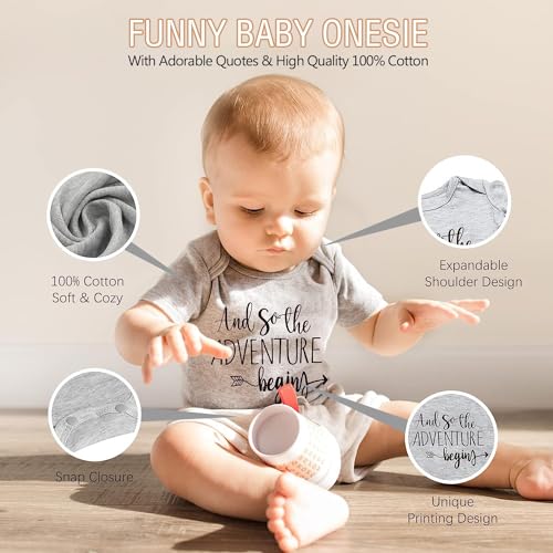 🎁 BABY ANNOUNCEMENT ONESIE & SOCKS: Neutral colors of our baby onesie & socks make newborn baby gift easy! The onesie with saying “And so the ADVENTURE begins” is made of 100% natural cotton, very soft and breathable. The funny sayings “if you can read this” on the non-slip socks will put a smile on everyone’s face.