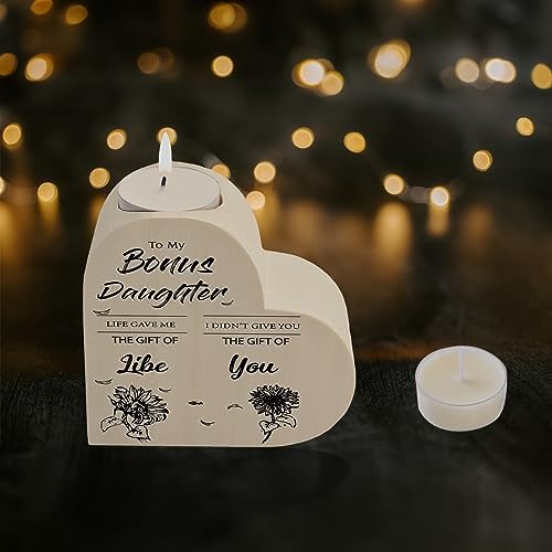 Gifts for Bonus Daughter from Mom: This cute candle holder a meaningful message. great as a gift to mom on birthday, holiday, anniversary, and Christmas, gifts for Daughter. heart candle holder. product information: Material: natural wood,tea light candles. Size: The dimension is 4.17IN*3.94IN (detachable)The exquisite heart-shaped design puts. Note:natural wood presents natural colors and patterns, so each candle holder is unique and varies slightly from the picture. Package Included: 1Pcs/set Wooden Candle Holder. If there are any problem, please feel free to contact us.