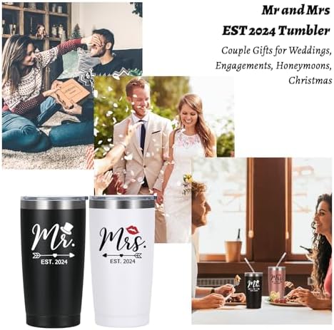Be the first to review “Mr & Mrs Est 2024 Tumbler, Wedding Gifts, His and Hers Gifts, Engagement Anniversary Christmas Gifts for Couples Newlyweds Husband Wife (20 Oz, Black & White)”