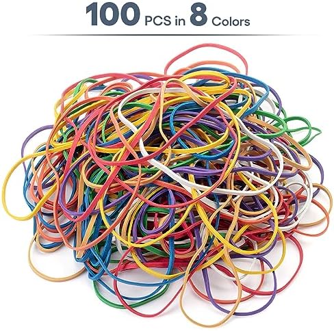 The package includes 100 rubber bands in 8 assorted colors, providing you with an abundant supply and color options to meet your needs. With this versatile assortment, you can easily organize and categorize various items.