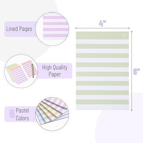 - Mr. Pen lined sticky notes set includes 6 pads, with each pad containing 45 striped sheets, measuring 4 inches by 6 inches-ample space for notes, lists, and reminders.