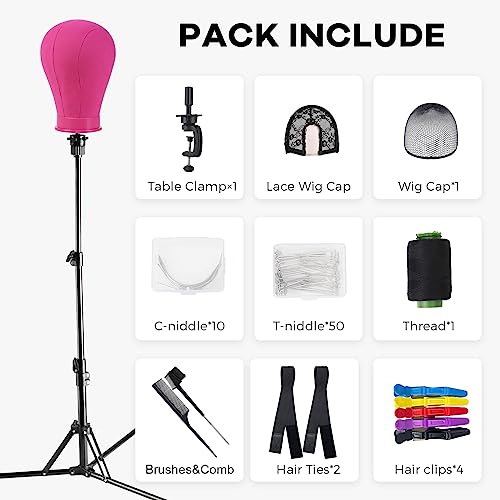 【Complete Set】Our pack includes a canvas head, wig stand for styling and clamp, wig caps, pins set, hair brush, professional hair comb,wig band and clips. With all the accessories you need to practice making wigs, this set is fully functional.