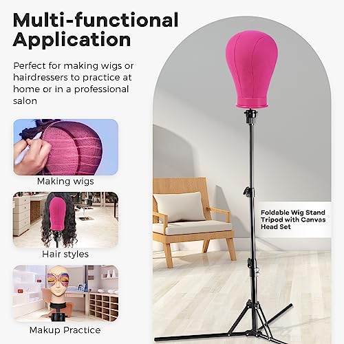 Neverland Beauty & Health 23 Inch Wig Stand Tripod with Head,Wig Head Stand with Mannequin head,Mannequin Head Stand with Canvas Head for Wigs,Manikin Head Set for Wigs Making Display(Red)