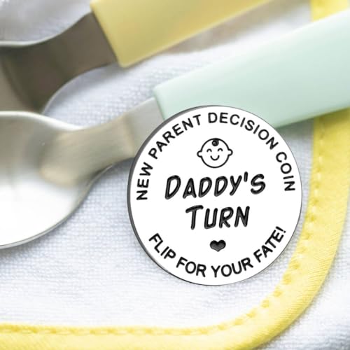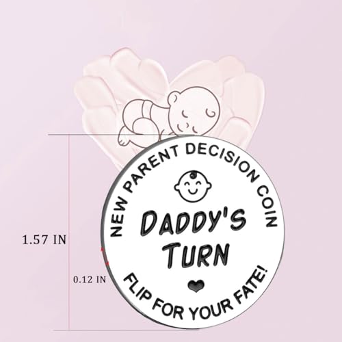💓【FUNNY DECISION】 To take care of a baby and bring some fun for a tired time, 2 sides of this pregnancy gifts coin stand by dad and mom. Turn the new parents gifts coin flips to decide whose turn to change a diaper or feed your baby at the midnight.
