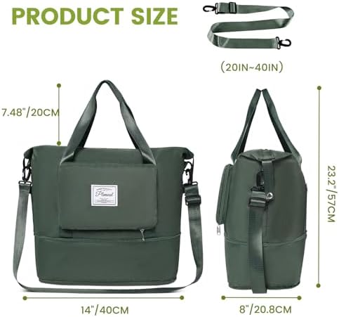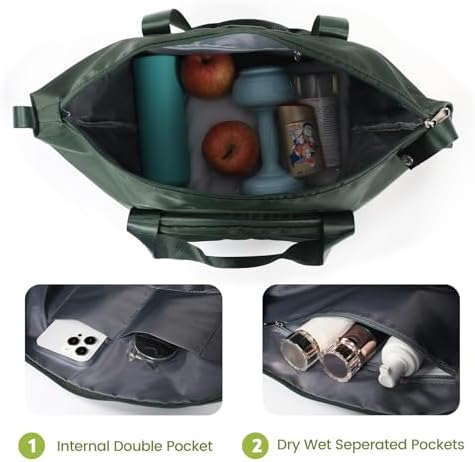 👜【Dry & Wet Separated & Multiple pockets】This Gym Duffle Bag have the high density water resistant material can help you to separate dry items and wet items. After workout, sports, you can put wet clothes or towel in this crossbody bag. Sports duffel bag has two zipper pockets, two inner patch pockets and a wet and dry separation bag. This overnight bag is great for workout, sports, occasional travel.
