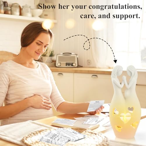 Handcrafted statue in a neutral tone suitable for pregnant women of any skin tone.Resin material, odorless and sturdy.Beautiful home table decor with flickering LED creates a delightful ambiance.Early pregnancy must haves, Useful cards help expecting moms ease worries about their first pregnancy.