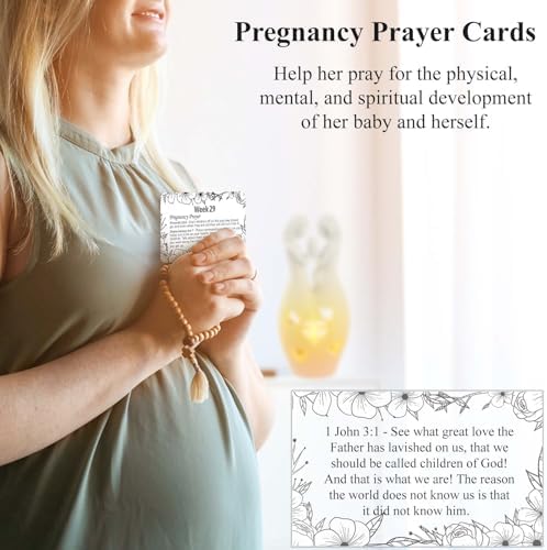 🤰🏻【Pregnancy Prayer Cards】Each card has two simple Bible verses per week to give power and comfort to pregnant women by praying for their pregnancy journey. Display these prayer cards in the house as a reminder to pray for their God’s gifts. By the end of 42 weeks, the prayers will cover the child’s physical, mental, and spiritual development, as well as strength and calmness as a new mother. These cards are a nice addition to pregnant mom gifts, inspiring and uplifting them.