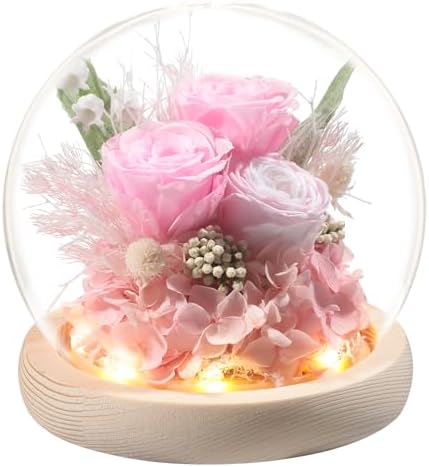 Preserved Flowers Rose in a Glass Dome with LED Light as Mothers Day Roses Gifts, Birthday Gifts, Anniversaries Gifts, Womens Gifts, Mom Gifts, Grandma Gifts. Forever Flowers Gifts for Women Mom Her