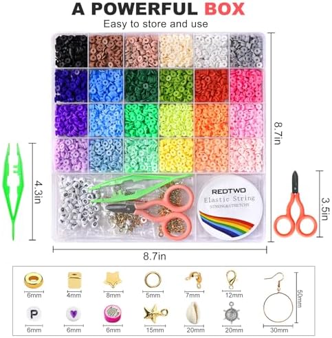 REDTWO Bracelet Making KIt with 4200Pcs clay beads and charms,meet all you needs for bracelets and other jewelry making.