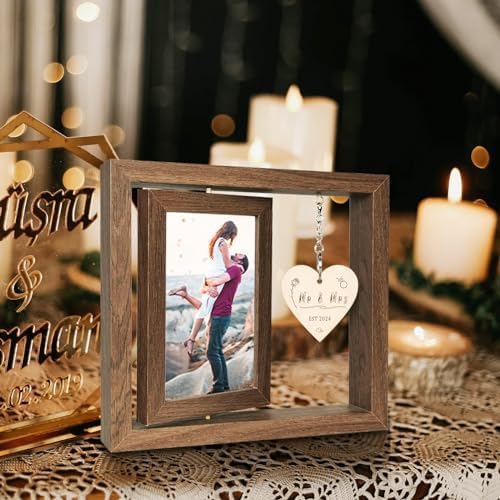 Sturdy Wood Material: 360 Degrees rotating floating picture frames are made of lightweight wood with a unique design vintage wood texture finish and real glass cover, making quality newlywed bridal shower gifts for bride to be