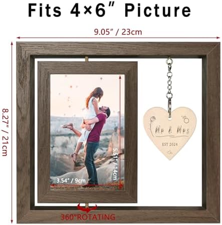 Fit 4×6 Inches: Measuring approximately 9.05×8.27 inches, the mr and mrs picture frame insert 2 vertical 4×6 inches back to back at the same time, simple but heartwarming gifts for the memories of the couples