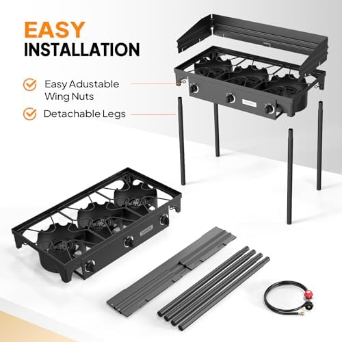 This powerful burner is equipped with a cast iron head, outputs a whopping BTU of 225,000. It is portable and makes outdoor cooking easy with removable legs and windscreen. And it can adjust the firepower to make your cook more delicious. It is suitable for various types of pot because of burner bracket. So you can enjoy cooking outdoor with your family to have a happy time. Do not hesitate, just buy it.