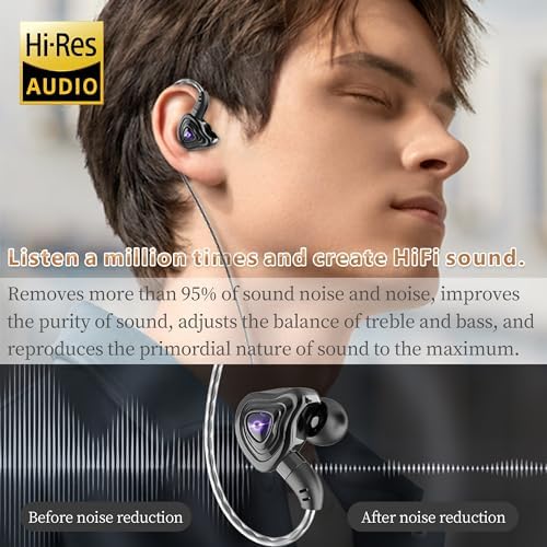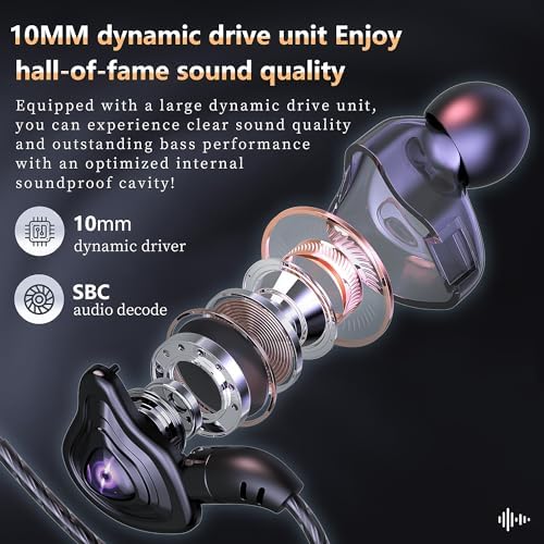 【COMFORTABLE FIT & EXCELLENT SOUND】Ergonomic, L-shaped head, Fits to ear size and does not fall easily Made of flexible silicone material, high sealing force, long-term use, and no feeling of discomfort.