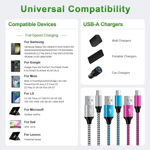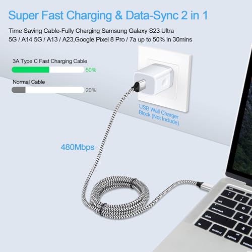 【Compatibility】USB C Cable Fast Charging for iPhone 15,15 Pro,15 Pro Max,15 Plus;Samsung Galaxy S24,A15 5G,A14,A54,A25,S23 Ultra,A13,A23,A53,A03s,Z Fold 5 4,Z Flip 5 4,A24,A34,S21 FE,A04S,S22+,S20 FE,S10e,S9,S8,A12,A32,A52,A02s,A42,A73,M42,Note 21/20 Ultra/10+/9;Google Pixel 8,8 Pro,7a,7,7 Pro,6a,6,5 XL,4a,3,2 XL,3 LITE;iPad Pro 12.9/11/10.5,Mini6,Air4;Moto G Pure/Play/Power/Stylus(2022),Edge 5G UW,G 5G,Edge 20 Lite/20 Pro,G100,Z/Z2 Force/Z3/Z4/X4;LG G8 ThinQ G7 G5 G6 V20 V35 V30S V40 V60 Q8.