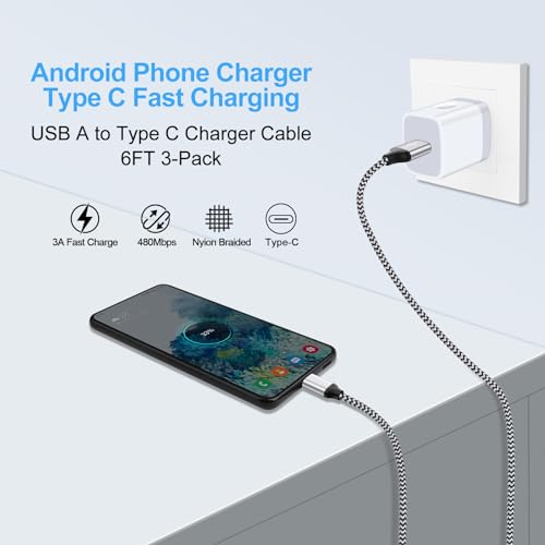 3-Pack 6ft USB Type C Fast Charging Cable, 3A Android Phone Charger Power Cord for iPhone 15 Pro Max,Samsung Galaxy A15 5G/A54/S24 Ultra,Pixel 8 Pro/7a/6a
