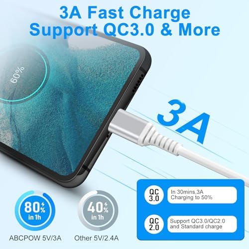 【Fast Charge & Data Transfer】: 25W fast type c port charging cable supports PD3.0, QC3.0, QC4.0 fast charging up to 3A and sync fast data transfer speed up to 480Mbps. 40% faster than 2.4A samsung a54 charging cable. Samsung fast charger type c cord has a built-in intelligent safety chip, intelligent thermostat, supports charging while playing.