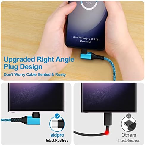 【Enhanced Cable Durability】: Reinforced 90 degree Samsung S24 Charger USB C Cable has electronic safety certifications that comply with appropriate standards. The premium nylon braided design enhances the durability of the cable. which makes the usb android cable more sturdier than normal cables but also tangle-free. With 40,000+ times bend test, the flexible and durable double-braided nylon type c fast charger cord longer service life and will never rupture.