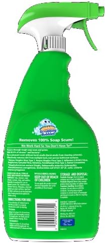 With its targeted spray, bathroom grime fighter works to remove 100% of soap scum on any surface.