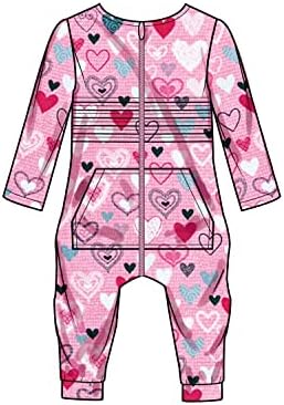 Knit toddler’s jumpsuit pattern features a front zipper, kangaroo pocket, pin tucks, slim fit legs and a optional hoodie; includes sleeve variations for long, short and sleeveless