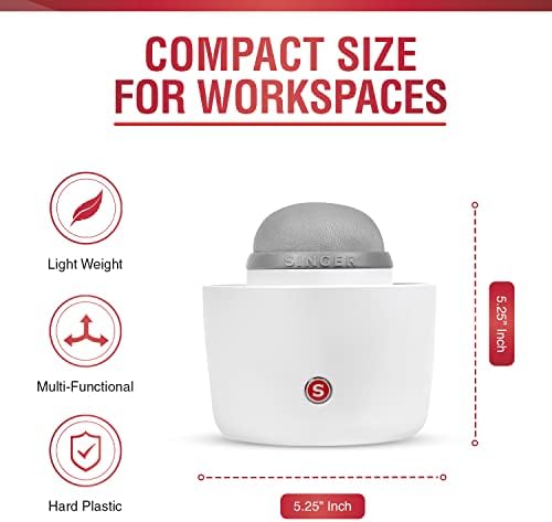 The Singer Pin & Tool Caddy is a sturdy and convenient sewing supplies and craft organizer with easy-to-access storage space. Measuring 5.25” in diameter and standing 5.25” high, this desktop sewing supplies organizer easily fits on a sewing machine console, desk, counter, table, or any flat surface to organize an assortment of needles, pins, sewing accessories, and tools. The storage caddy itself is constructed from durable white hard plastic, and its base features a non-slip grip for extra stability. The oversized light gray built-in pin cushion attaches to the caddy with a darker gray gasket ring and acts as a lid for the middle storage compartment designed for easy access to smaller notions like pins and safety pins. On the underside of the pin cushion is a low strength magnet that makes gathering light weight notions like loose needles and pins a breeze. Surrounding the round middle compartment are four open deep storage sections, perfect for stashing all tall sewing supplies from cutting instruments to sewing aids. This versatile sewing supplies organizer can even be used as a craft or desk organizer to keep scissors, paint brushes, pencils, and paper clips within easy reach. With so many ways it can be used, buy one for each of the areas you want to organize. The Singer Pin & Tool Caddy is the perfect sewing caddy for organized tabletop storage, easy-to-reach access, and optimal organization.