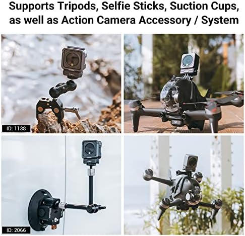 【Foldable Adapter & 1/4”-20 Threaded Hole】The mount features one 1/4”-20 threaded hole and foldable connector at the bottom that support tripods, or extension arm such as SmallRig 1138 and SmallRig 2066, selfie sticks, suction cups, as well as action camera accessory/system