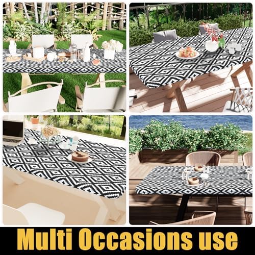 [Versatile & Reusable] Our fitted tablecloths with classic geometric patterns can give you a warm and bright dining environment, that seamlessly suits picnics, camping, patios, dining rooms, kitchens, parties, and banquets more.