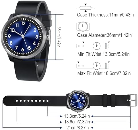 Super soft and durable 2mm thickness ultra-thin PU band, with 11 adjustment buckles and stainless steel buckle, suitable for kids with wrists 15-21cm.
