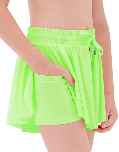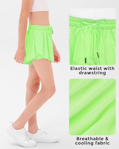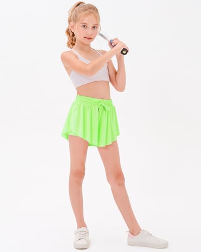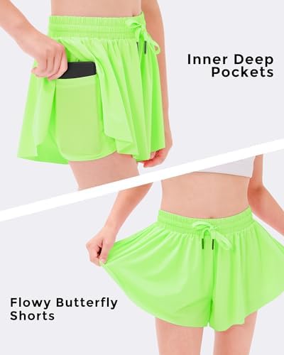 Stelle Girls Flowy Shorts with Pockets Athletic Running Skirt High Waist Butterfly 2 in 1 Sports Short 5-16 Years