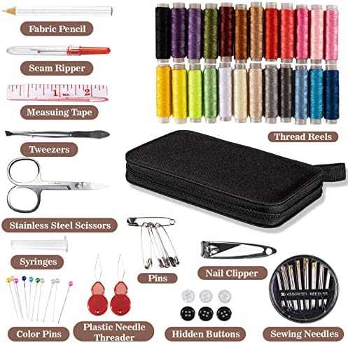 Perfection Sewing Kit – The sewing kit inckudes 24 spool of thread, cloth pencil, sewing ripper,tape measure ,tweezers,scissors,syringes,color pinsand stainlees steel pins,needle threader,buttons and nail clipper,sewing needles,a wide variety of sewing tools for different sewing needs, including hand sewing and machine sewing.Sewing supplies is a great tool for anyone who likes to sew or needs to mend clothes.