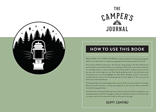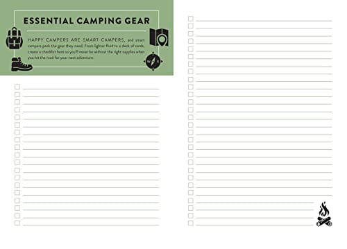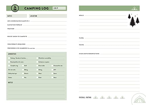 Camping Logs allow you to keep track of your favorite campsites (or coordinates when you venture off grid), record the weather conditions of your trip, who you were with, and what sights you saw. Each log has a page of prompts to track key information, plus a lined section for additional observations.