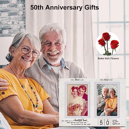 Just the Right Size – This this then & now 50th wedding anniversary picture frame is approximately 11.8×8.7 inches and holds two 4×6 inch photos. It’s ideal for displaying on a wall or placing on a table, and is not too big or too small. It’s the perfect way to celebrate your journey together and keep your precious memories alive for years to come
