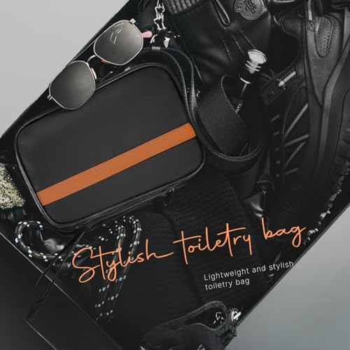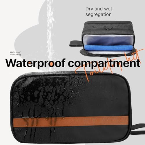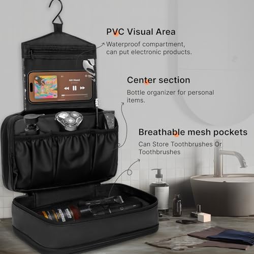 Men’s toiletry bag with waterproof compartment for visual area, you can do it while washing and enjoying your music, video and so on.