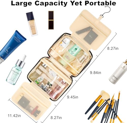 Waterproof and Easy to Clean: The surface material of the hanging toiletry bag for women is made of Polyester, which is waterproof and more comfortable. The inside of the cosmetic bag is made of polyester and thickened PVC, which is waterproof and easy to clean. With this makeup organizer, even in the bathroom, there is no need to worry about getting wet or water in the bathroom bag.